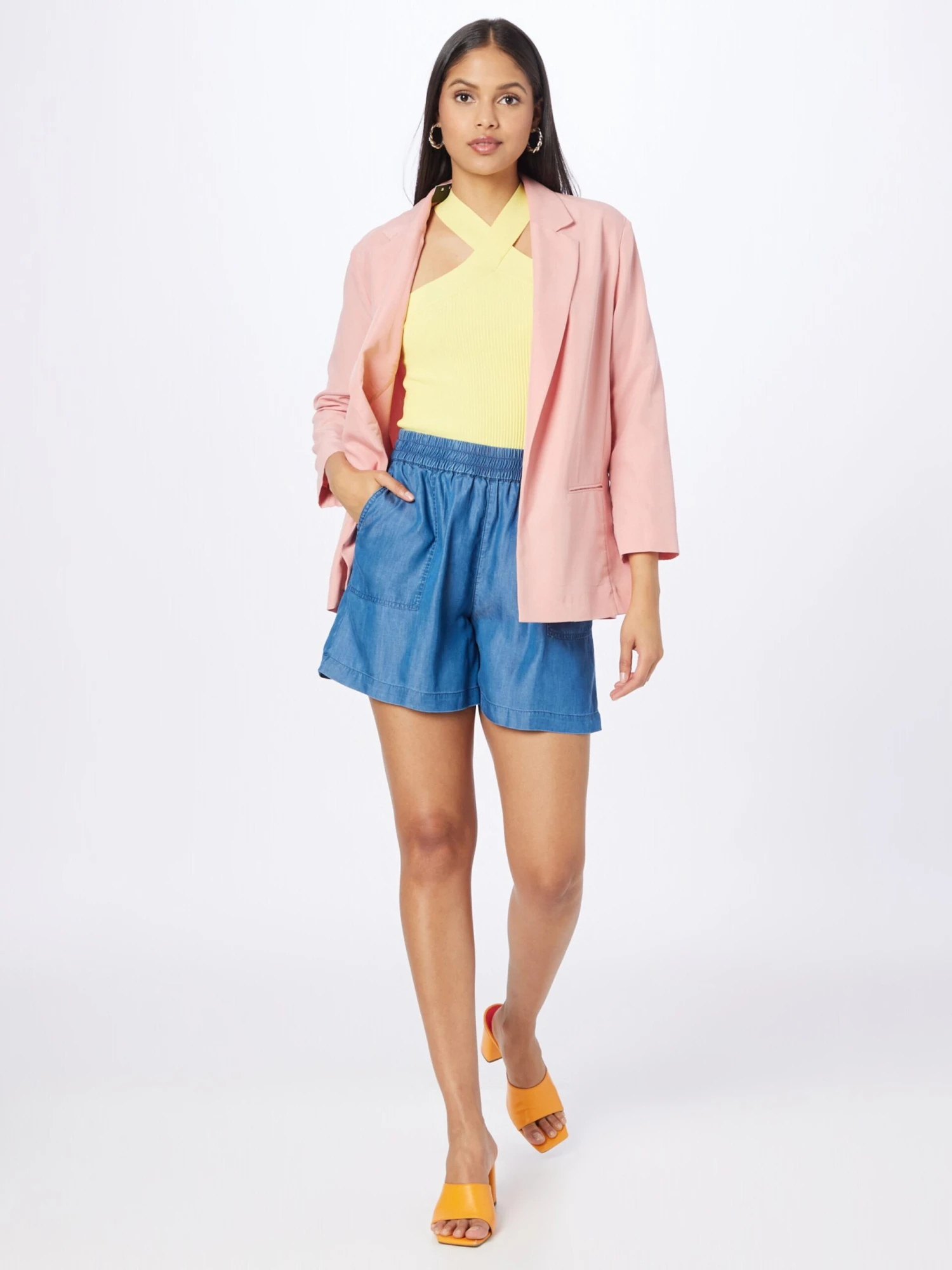 ICHI Shorts Regular Broek Dames Blauw