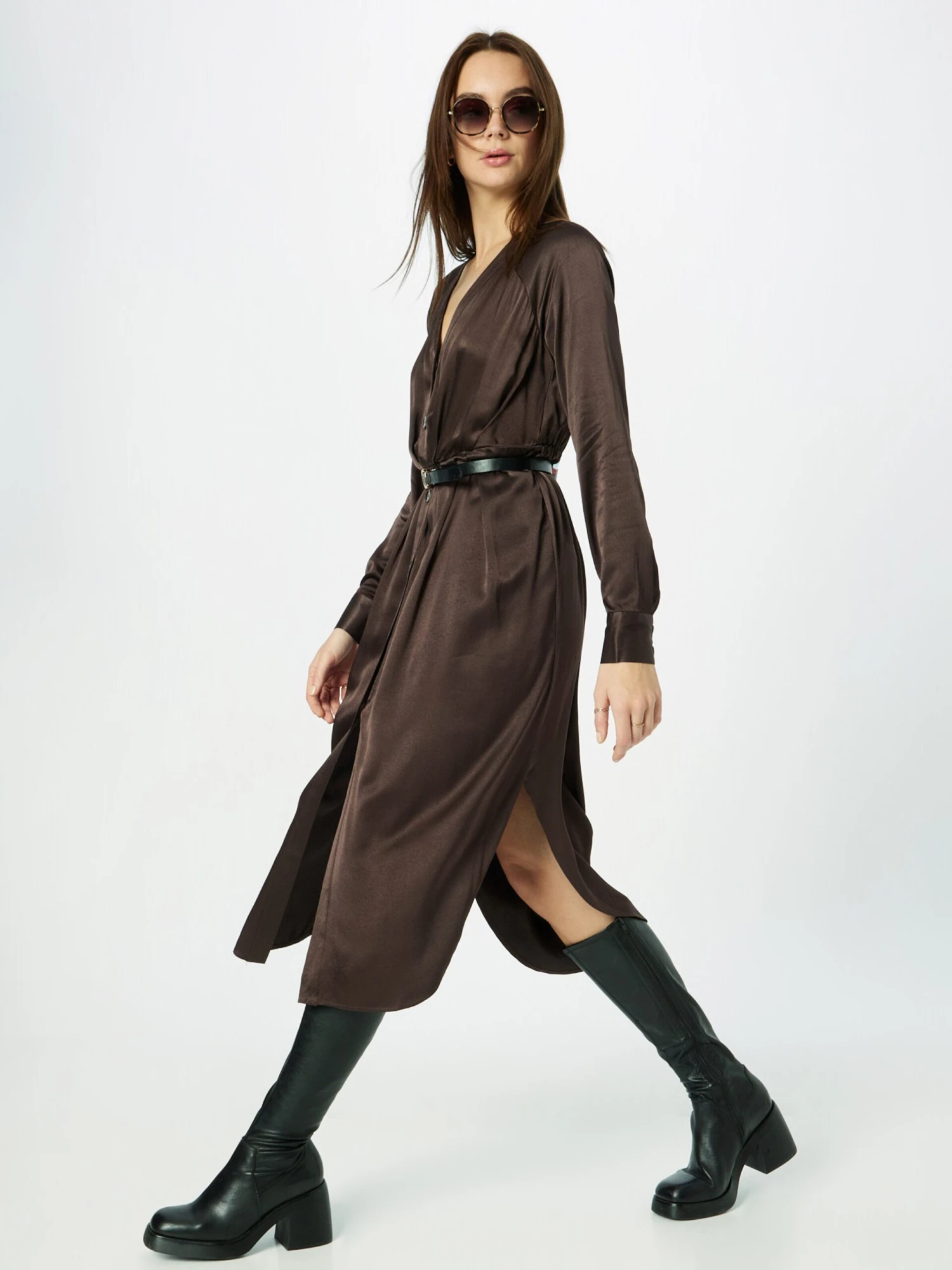 Midi Jurken Jurk CASSANDRA Dames Donkerbruin
